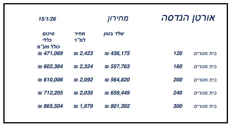 הצעת מחיר שלד בטון בית 160 מ"ר